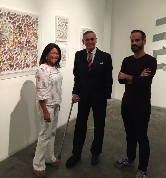 Directora de la galería, Frances Wu; Embajador Roberto García; Pedro Guzmán, curador.
