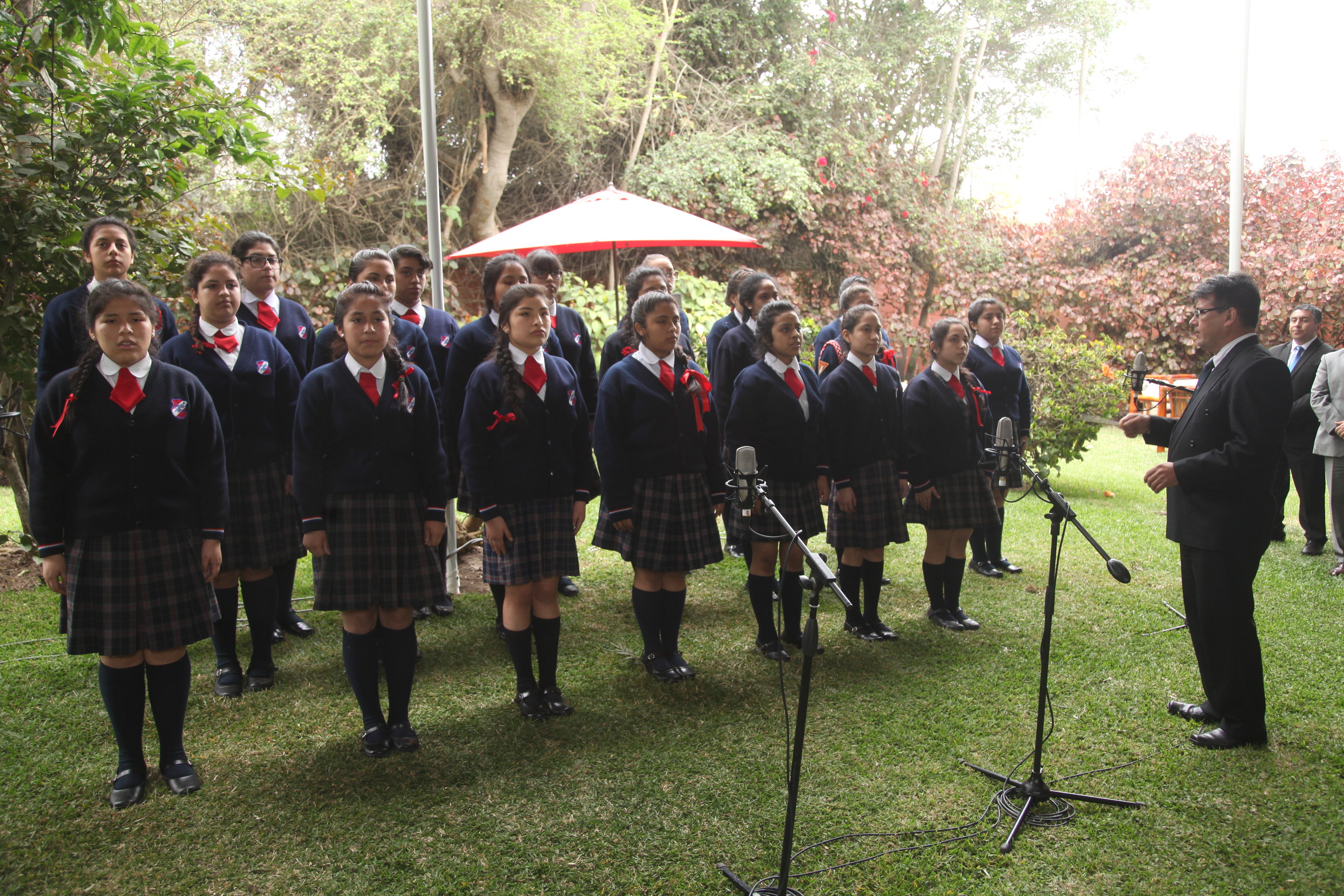 Tras el agradecimiento a las empresas que colaboraron con la actividad, la recepción comenzó con la entonación de los Himnos Nacionales de Perú y Chile, a cargo de un coro de 30 alumnas del Colegio República de Chile, del distrito de Lince, institución apadrinada por la Embajada de Chile, en una iniciativa público-privada donde participa además la Cámara de Comercio Peruano - Chilena.