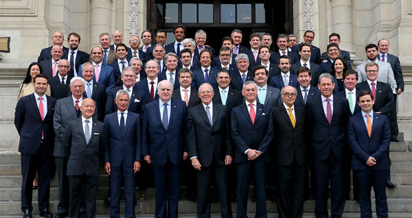 El Presidente peruano, Pedro Pablo Kuczynski, junto a un grupo de ministros de Estado, recibió a una delegación de la Cámara de Comercio de Santiago (CCS) en el Palacio Pizarro. Marcando una positiva señal para la relación bilateral, el encuentro -en el que participaron además representantes del sector privado peruano- sirvió para intercambiar opiniones y visiones en torno a eventuales mecanismos de comercio conjuntos en el contexto internacional, además de promover un impulso a seguir intensificando las relaciones entre Chile y Perú.