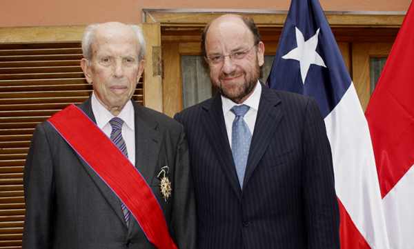En la ocasión, el ministro Alfredo Moreno impuso la Orden al Merito Bernardo O´Higgins en Grado de Gran Cruz al destacadon empresario peruano Mario Brescia, por su notable contribución al fortalecimiento de los lazos binacionales.