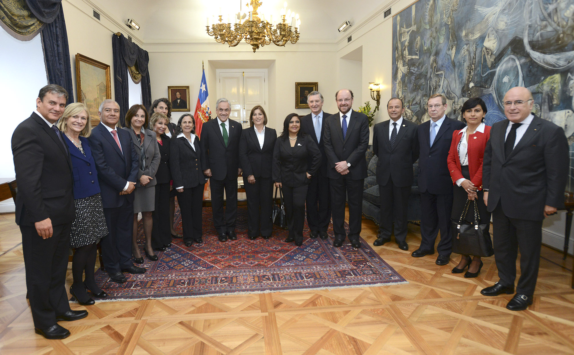 La delegación de Ministros Peruanos, integrada por los titulares de Relaciones Exteriores, Educación, Interior, Justicia y Derechos Humanos, Salud, Trabajo y Promoción del Empleo, Desarrollo e Inclusión Social, Vivienda, Construcción y Saneamiento y de la Ministra de la Mujer fueron recibidos, junto al Embajador de Chile en Perú Fabio Vio Ugarte, en el Palacio de la Moneda por S.E. el Presidente de la República Sebastián Piñera, demostrando la importancia de la reunión, la cual marca un hito en la relación bilateral.