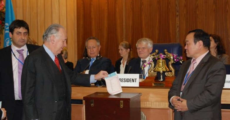 La votación se dio en el marco de la Asamblea, que se reúne una vez cada dos años y, entre otras tareas, elije los 20 países miembros de su Consejo. Singapur fue la nación que obtuvo la más alta votación, con 141 y Tailandia, la más baja, con 99 votos. Quedaron fuera del Consejo Kuwait, Emiratos Arabes Unidos, Islas Marshall, Irán, Pakistán e islas Cook.