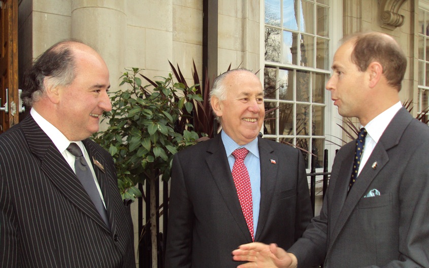 | Pedro Pfeffer; embajador Rafael Moreno; y Su Alteza Real, el Príncipe Eduardo de Inglaterra. |