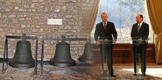 Las tres campanas, fabricadas entre 1753 y 1811, están actualmente siendo transportadas hacia Valparaíso a bordo del buque británico HMS Portland. Éstas arribarán al puerto a principios de septiembre, luego de lo cual serán transportadas hasta Santiago para ser entregadas oficialmente por el Embajador Británico al Ministro Moreno.