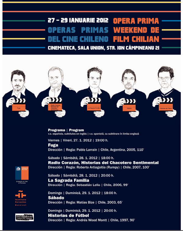 En la ciudad de Bucarest, se presentó el viernes 29 de enero el ciclo de Cine Chileno "Operas Primas", organizado por la Embajada de Chile en Rumania y que contó con el apoyo del Instituto Cervantes y el Archivo Nacional de Cine de Rumania.