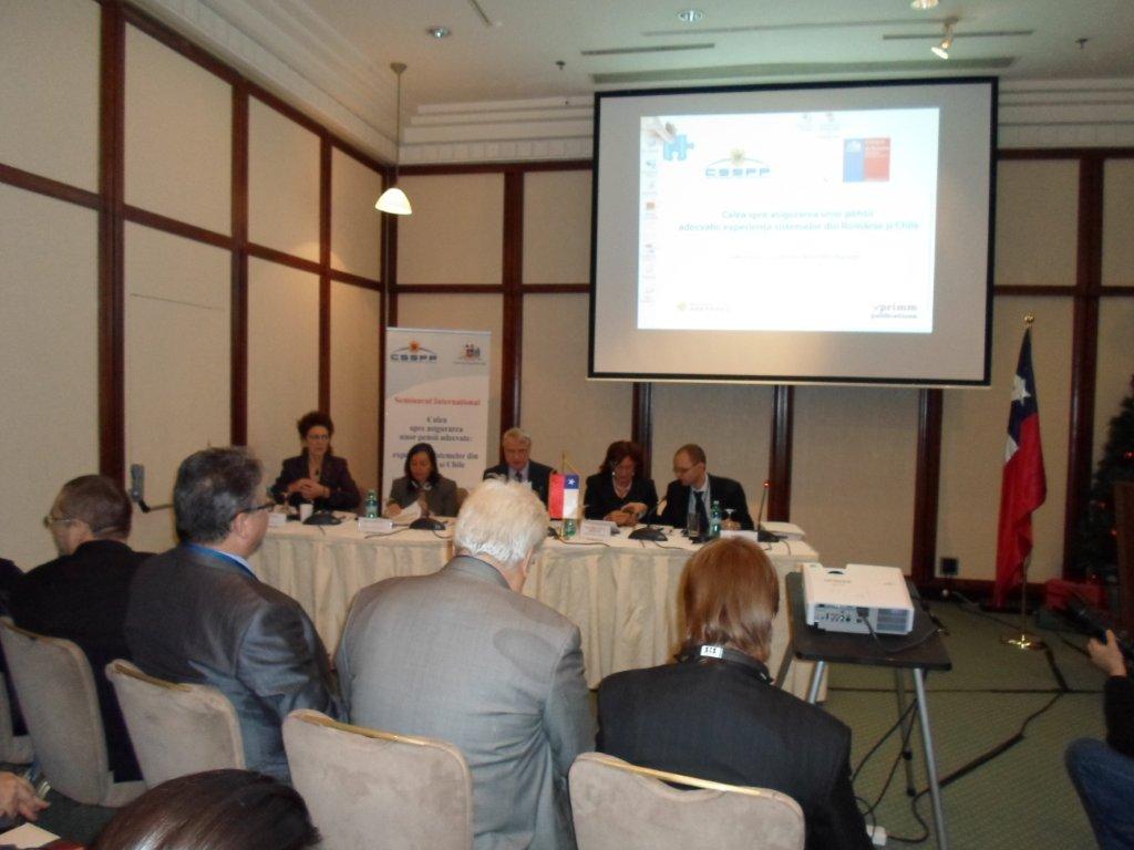 6 de diciembre del 2012: Se organizó un Seminario sobre Fondos de Pensiones, con la participación de la Superintendenta de AFP Sra. Solange Bernstein (quién viajó especialmente a Rumania para esta actividad) y las principales autoridades del Sistema Público y Privado de Fondos de Pensiones de Rumania.