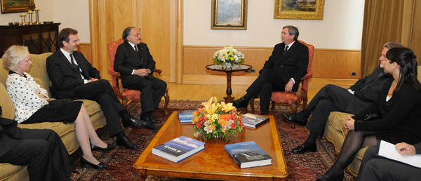 Posteriormente, el Canciller (s) Schmidt asistió al Palacio de La Moneda donde participó en la reunión de trabajo que sostuvieron el Presidente de la República, Sebastian Piñera y el Gran Maestre de la Orden de Malta, Matthew Festing. El Presidente Piñera aprovechó la oportunidad para condecorar con el Collar de la Orden al Mérito de Chile a Matthew Festing. Asimismo, la máxima autoridad de la Orden de Malta, condecoró al Mandatario chileno con el Collar Pro Mérito Mellitensi, reconocimiento que se otorga a aquellas personas que han aportado honor y prestigio a la Soberana Orden Militar de Malta con sus actividades.