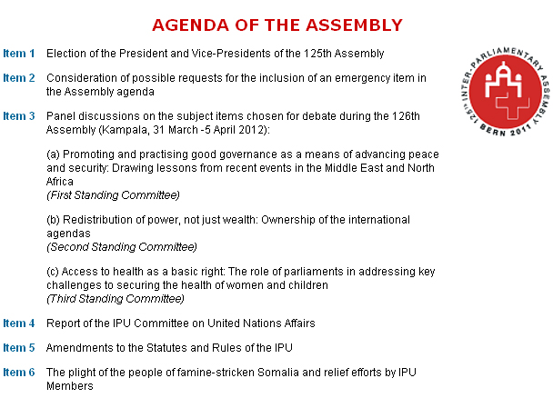 125 asamblea UIP (inglés) Comparte Síguenos A+ A- . More information: http://www.ipu.org/conf-e/125agnd.htm http://www.125-ipu.ch/