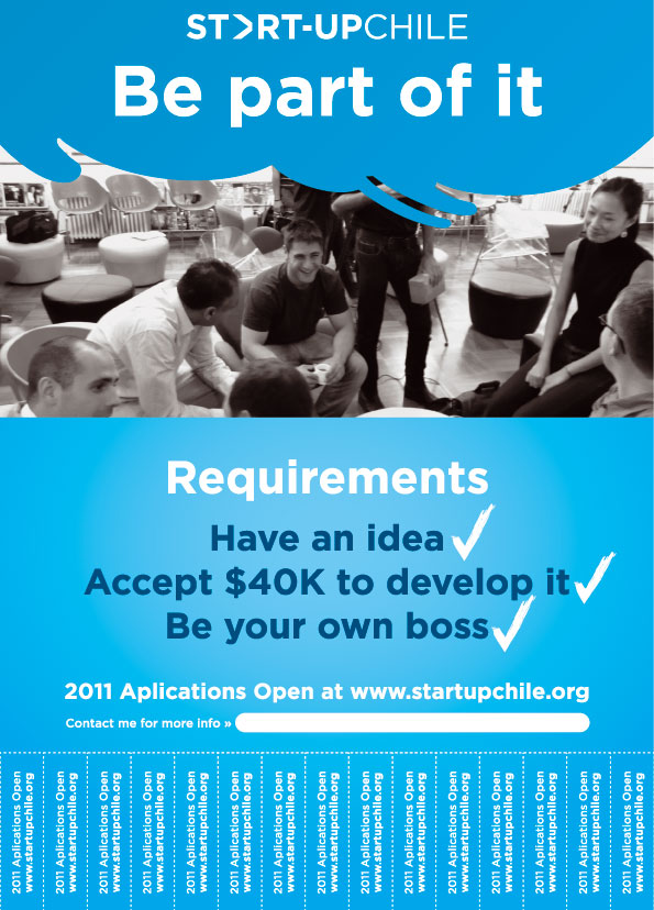 Ma?s informacio?n: www.startupchile.org +56-2-862-4339, email [email protected]