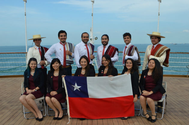 En el barco, junto a otros 229 jóvenes líderes de Japón, el Reinado de Bahrain, India, México, Nueva Zelanda, Australia, Rusia, Sri Lanka, Tanzania y los Emiratos Árabes Unidos, la delegación organizó experiencias de intercambio intercultural como seminarios sobre educación, cultura y narración en Chile, clases de español y de bailes latinos, y una fiesta con juegos típicos y tradiciones chilenas. También realizaron una gran presentación nacional en la que en 45 minutos dieron a conocer el país contemplando sus paisajes, sociedad, costumbres, bailes, música, tradiciones, gastronomía e historias.