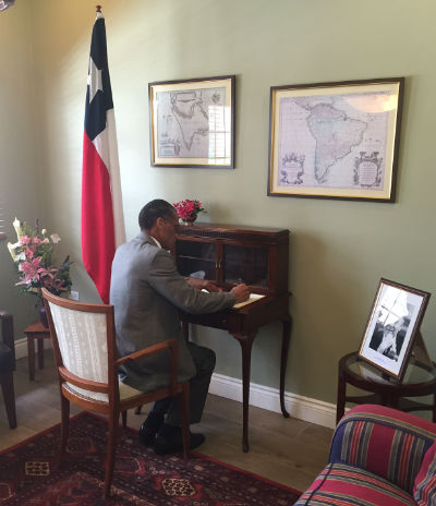 El ministro de Relaciones Exteriores de Trinidad y Tobago, Dennis Moses, llegó hasta la embajada de Chile en Puerto España, para entregar sus condolencias por el fallecimiento del ex Presidente de la República de Chile, Patricio Aylwin Azócar.