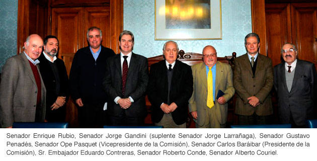 El pasado Jueves 14 de Agosto la Comisión de Asuntos Internacionales del Senado invitó especialmente al Embajador de Chile en Uruguay, Eduardo Contreras Mella a participar a una sesión extraordinaria presidida por el Senador Carlos Baraibar.