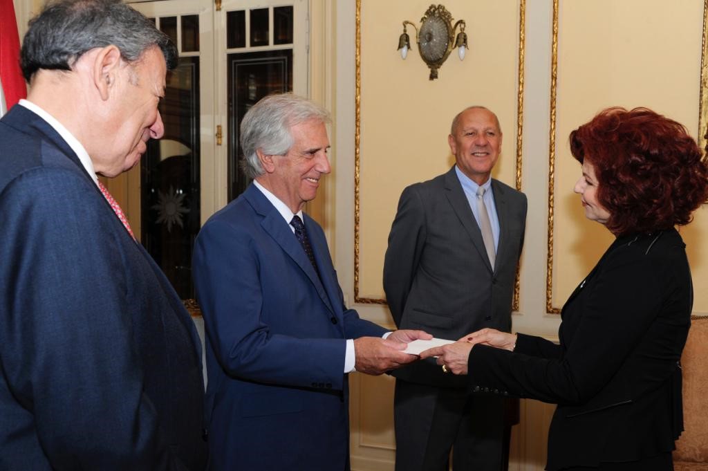 El martes 2 de abril, la Embajadora de Chile ante la República Oriental del Uruguay, Iris Boeninger, efectuó la entrega de sus Cartas Credenciales al Presidente Tabaré Vázquez.