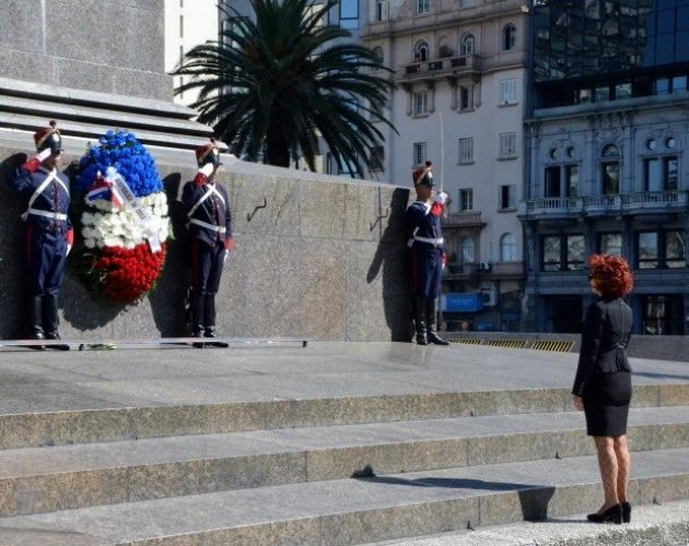 Posteriormente, efectuó el depósito de una ofrenda floral en el Monumento del prócer José Gervasio Artigas.