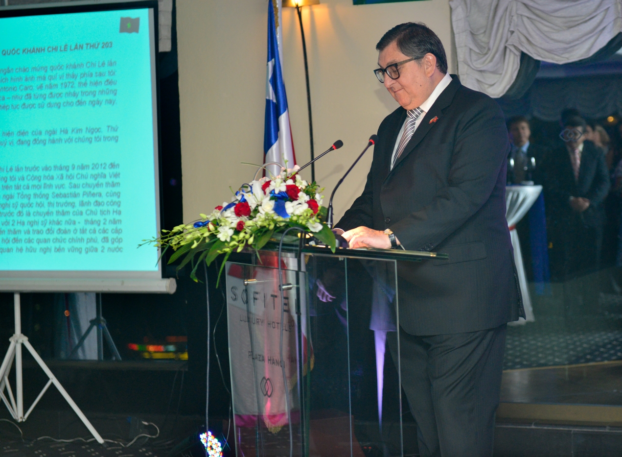 El Embajador ofreció un discurso ante la comunidad chilena residente en Hanoi, autoridades del Gobierno de Vietnam y empresarios locales.