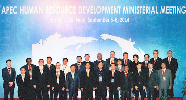 VI Reunión Ministerial de la APEC sobre Desarrollo de Recursos Humanos Comparte Síguenos A+ A- Con la participación del Embajador Fernando Urrutia, os días 5 y 6 de septiembre, se realizó en Hanoi la "VI Reunión Ministerial de la APEC sobre Desarrollo de Recursos Humanos".