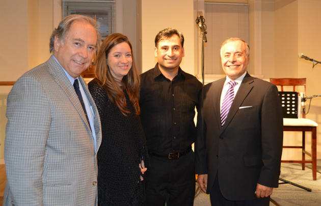 El Embajador de Chile en los Estados Unidos, Juan Gabriel Valdés; los músicos; y Arturo Giadala, Cónsul en Washington.