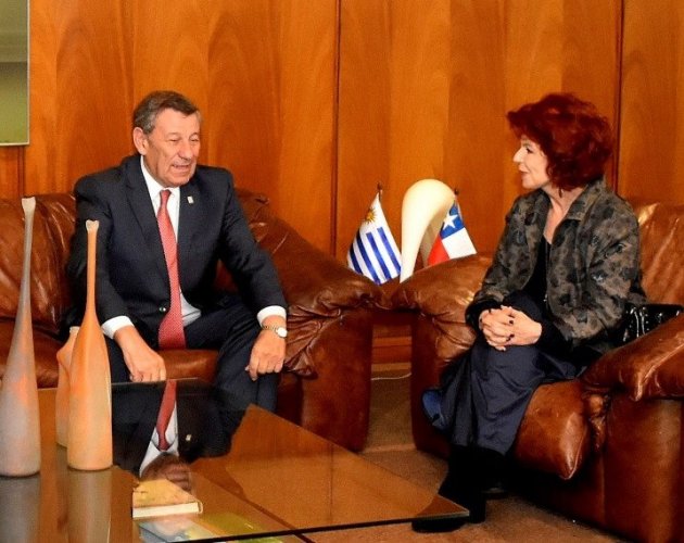 Embajadora de Chile, Iris Boeninger, presenta Cartas Figuradas ante el Ministro de Relaciones Exteriores de Uruguay, Rodolfo Nin Novoa