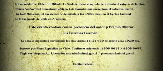Embajada de Chile presenta obra de teatro "Niñas Arana" de Luis Barrales