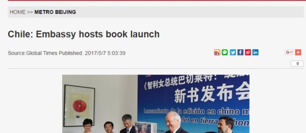 Diario Global Times destaca lanzamiento de libro en chino sobre Presidenta Michelle Bachelet