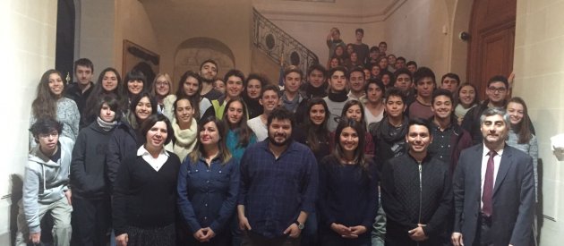 Colegio Alianza Francesa de Viña del Mar Jean d'Alambert visita la Embajada de Chile con motivo de su viaje de estudios a Francia.