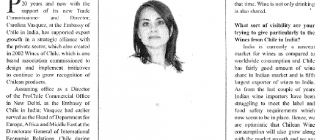 Interview. Carolina Vásquez, Trade Commissioner, ProChile India Commercial Office: "In qualitu, Chilean wines have few competitors"