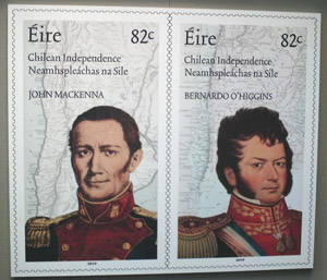 Irlanda celebra a O'Higgins y Mackenna en Lanzamiento de Sellos Postales
