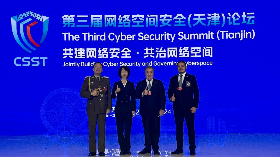 Los días 23 y 24 de septiembre del presente año, el agregado Policial de Carabineros de Chile, coronel Rodrigo Bustamante Soto y el agregado Policial PDI, subcomisario Carlos Llloncón Cárcamo, en compañía del ministro Consejero de la Embajada de Chile en la República Popular China, Sergio Valenzuela León, asistieron a la “Tercera Cumbre de Ciberseguridad”, la cual se llevó a cabo en la ciudad de Tianjin.