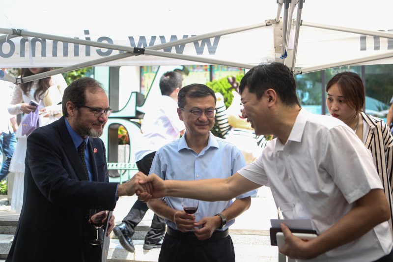 El evento contó con la presencia del Embajador de Chile en China, Mauricio Hurtado, quien destacó en su discurso: "Es un honor para mí darles la bienvenida a este evento en el que celebramos la inauguración del busto del destacado poeta chileno Pablo de Rokha, que vivió en China, precisamente en Beijing, hace casi 60 años atrás, invitado por el gobierno de Mao en calidad de huésped oficial. La decisión de erigir un busto en honor al premio nacional de literatura Pablo de Rokha no solo celebra su legado literario, sino que también destaca su papel crucial en el establecimiento de vínculos culturales con la República Popular China".