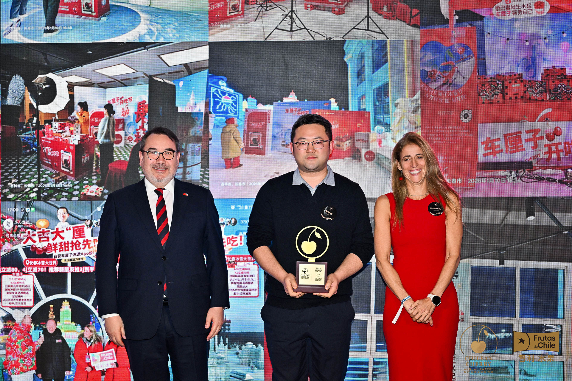 Reconocer la contribución de socios minoristas clave para la promoción de la cereza chilena en China. Ese fue el objetivo de la ceremonia de entrega de los “Premios a la Cereza Chilena 2025-2026” que se realizó el pasado 12 de marzo en Shanghái y en la cual participó el embajador de Chile en China, Pablo Arriarán.