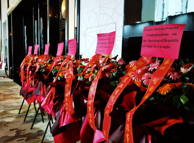 La ceremonia de inauguración del nuevo consulado de Chile contó con la participación de altas autoridades de la provincia de Sichuán, representantes de empresas chilenas, así como representantes de empresas chinas con interés por invertir en nuestro país, y también fue invitada a la celebración la comunidad de connacionales que reside en la provincia de Sichuán.