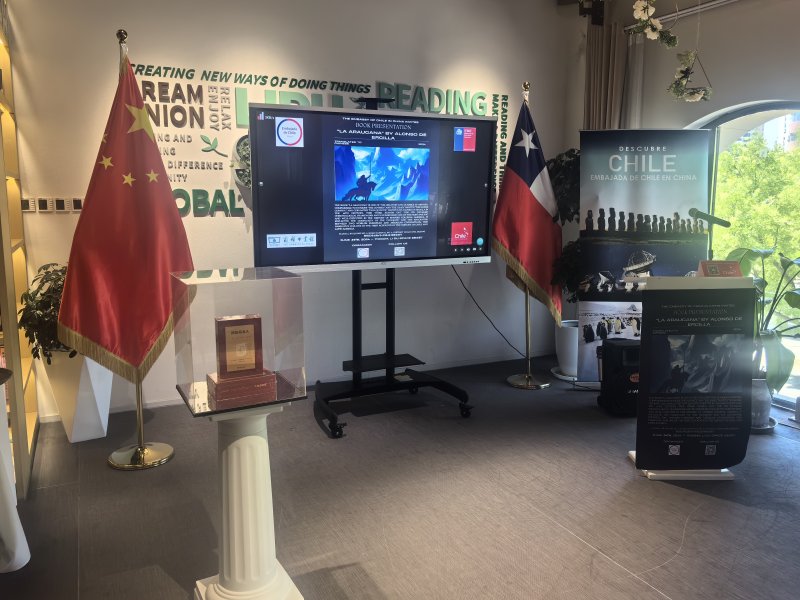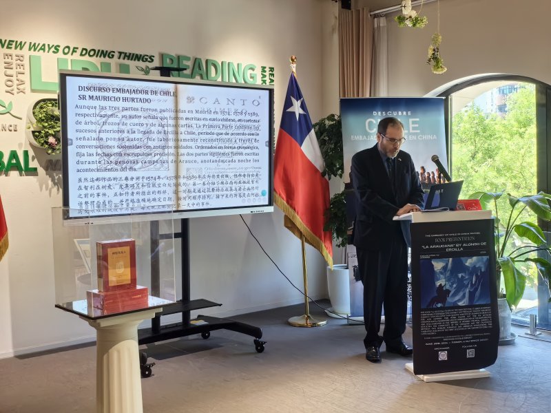El 24 de junio, la Embajada de Chile en China realizó la presentación del libro "La Araucana" traducido al chino mandarín. El evento contó con la presencia del embajador de Chile en China, Mauricio Hurtado, miembros del cuerpo diplomático residente en Beijing, personalidades de la cultura y las artes y académicos. En el evento se destacó la relevancia de esta obra épica escrita por Alonso de Ercilla, durante la conquista de Chile, en el siglo XVI.