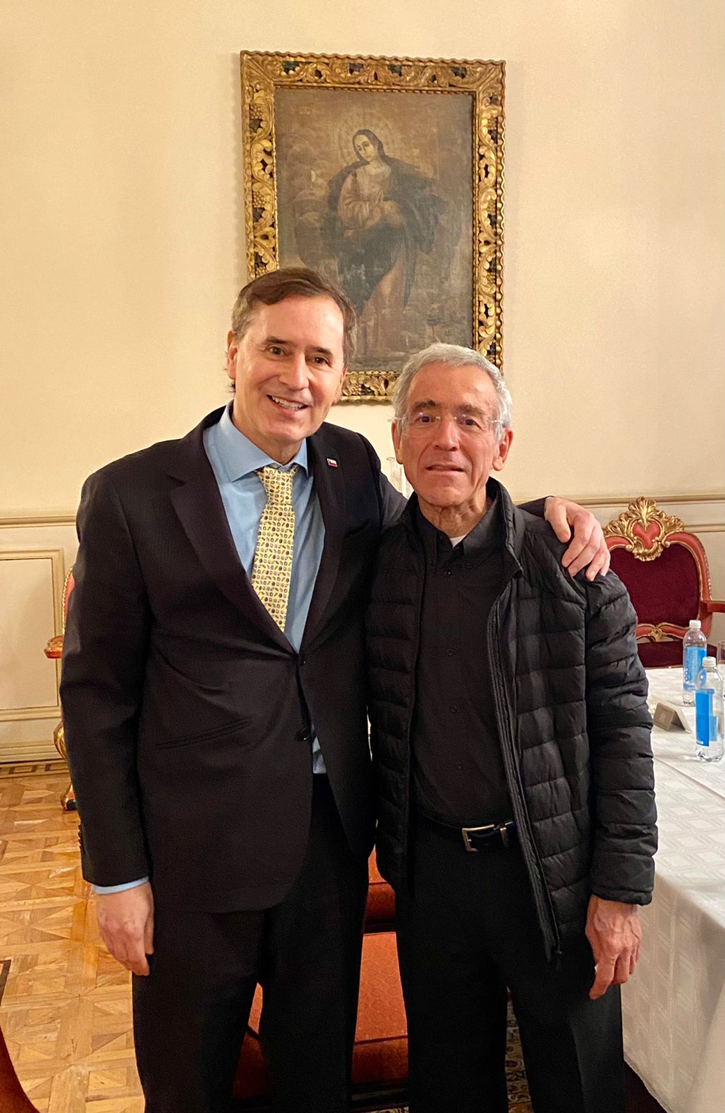 Posteriormente, el Embajador Hernández se reunió con el RP (JHS) Francisco Le Roux, presidente de la Comisión para expresarle el reconocimiento de nuestro país al importante e histórico trabajo a su cargo, labor que contribuye de manera robusta a la construcción de la paz de Colombia.