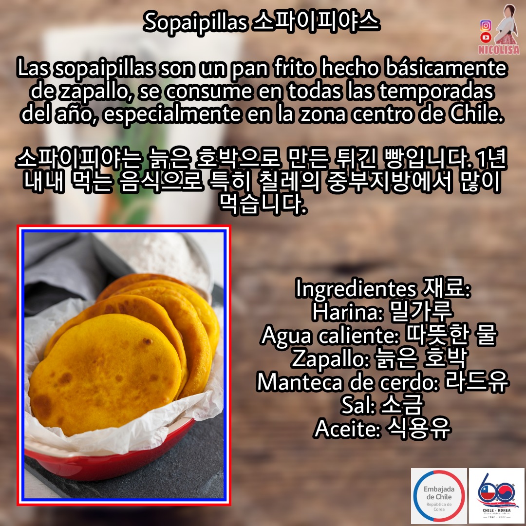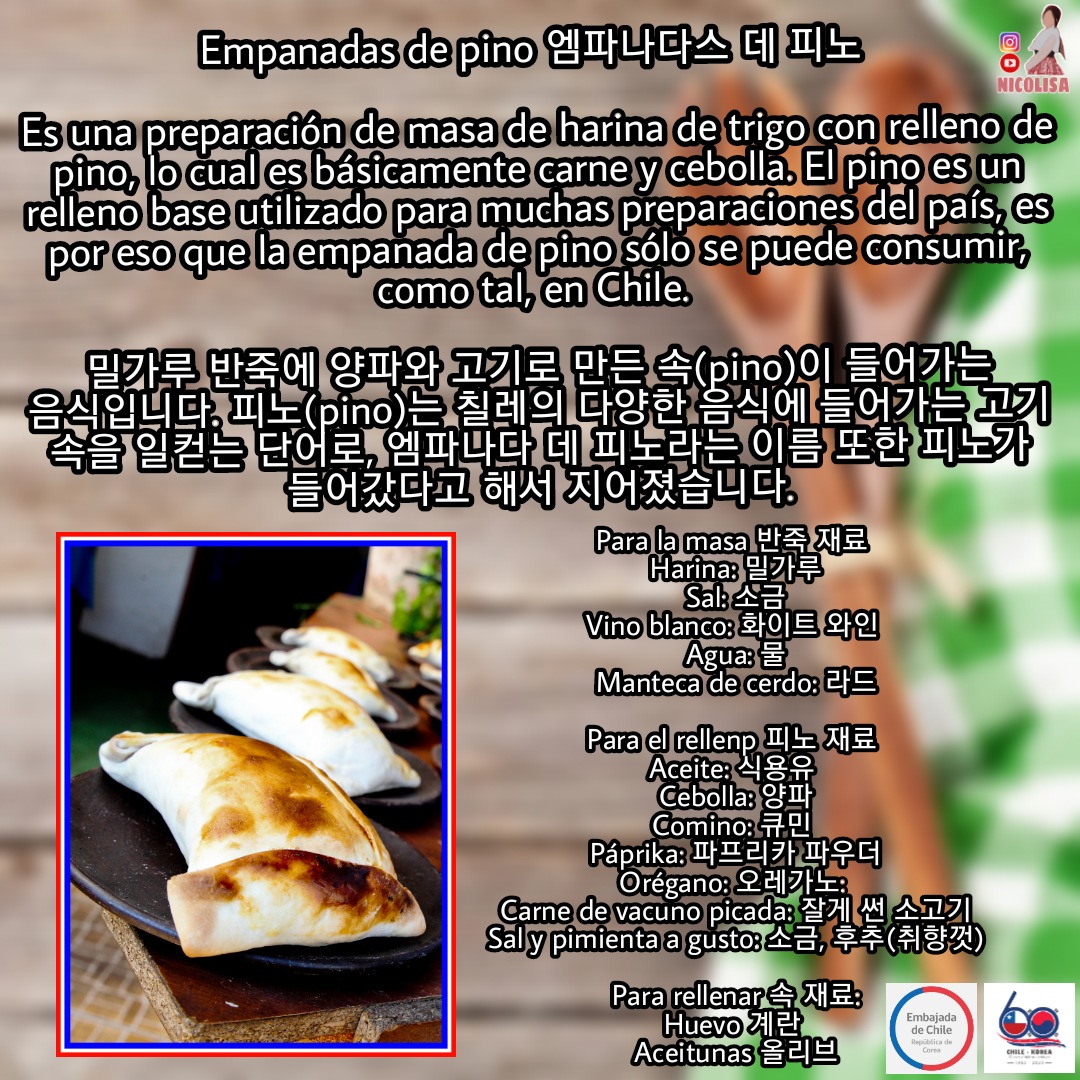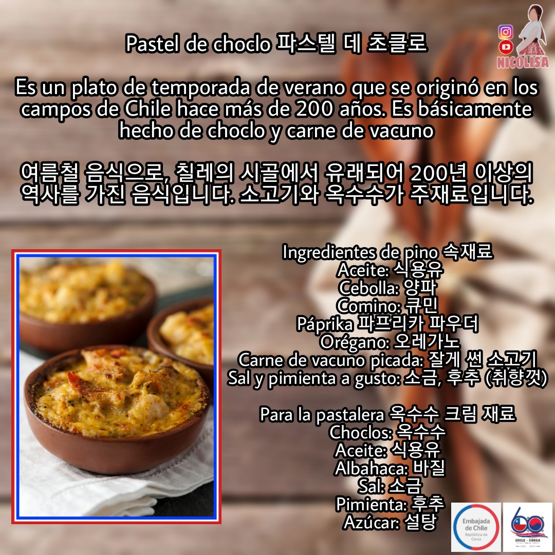 En la primera fase del ciclo, Nicole Millar, chilena estudiante de idioma coreano e influencer asentada en Seúl, presentó un recetario de cuatro platos tradicionales de Chile, con subtítulos en coreano, y que acumulan más de 600 "me gusta" en el Instagram oficial de la Embajada. Se trata de los siguientes platos: Cazuela, sopaipillas, empanada de pino, cazuela de vacuno.