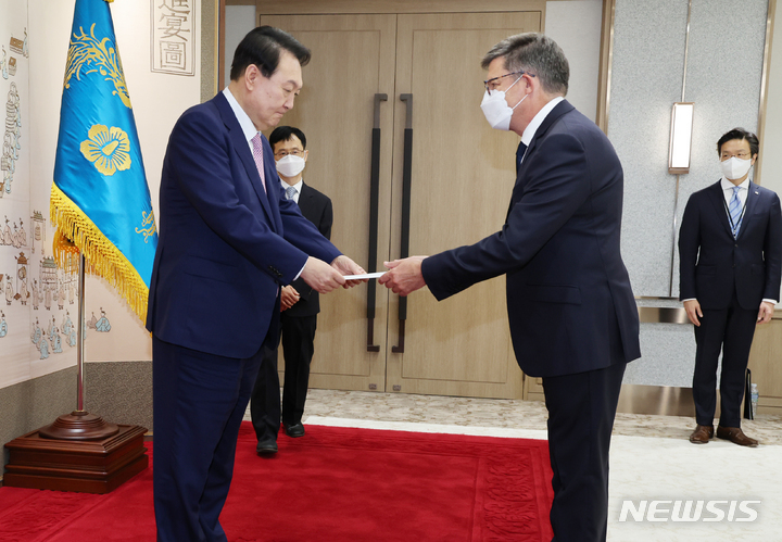 Este 29 de julio, el Embajador Mathias Francke presentó Cartas Credenciales ante el Presidente de la República de Corea, Yoon Suk-yeol.