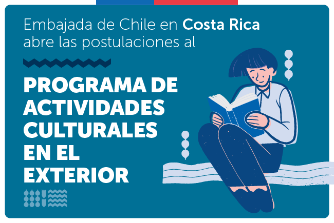 La Embajada de Chile en Costa Rica comunica la apertura de la convocatoria para presentar proyectos artísticos y culturales por medio del Programa de Actividades Culturales en el Exterior por medio del cual, se busca captar propuestas de alto valor cultural y artístico que contribuyan al fortalecimiento de los lazos de Chile con otras naciones. Estas acciones pueden estar relacionadas a áreas como el desarrollo sostenible e inclusivo, derechos humanos, la política exterior feminista, la Política Exterior Turquesa (relativa al medio ambiente terrestre y los ecosistemas oceánicos), ecosistemas culturales sostenibles, participación de la ciudadanía en la vida cultural, la educación cultural, entre otros.