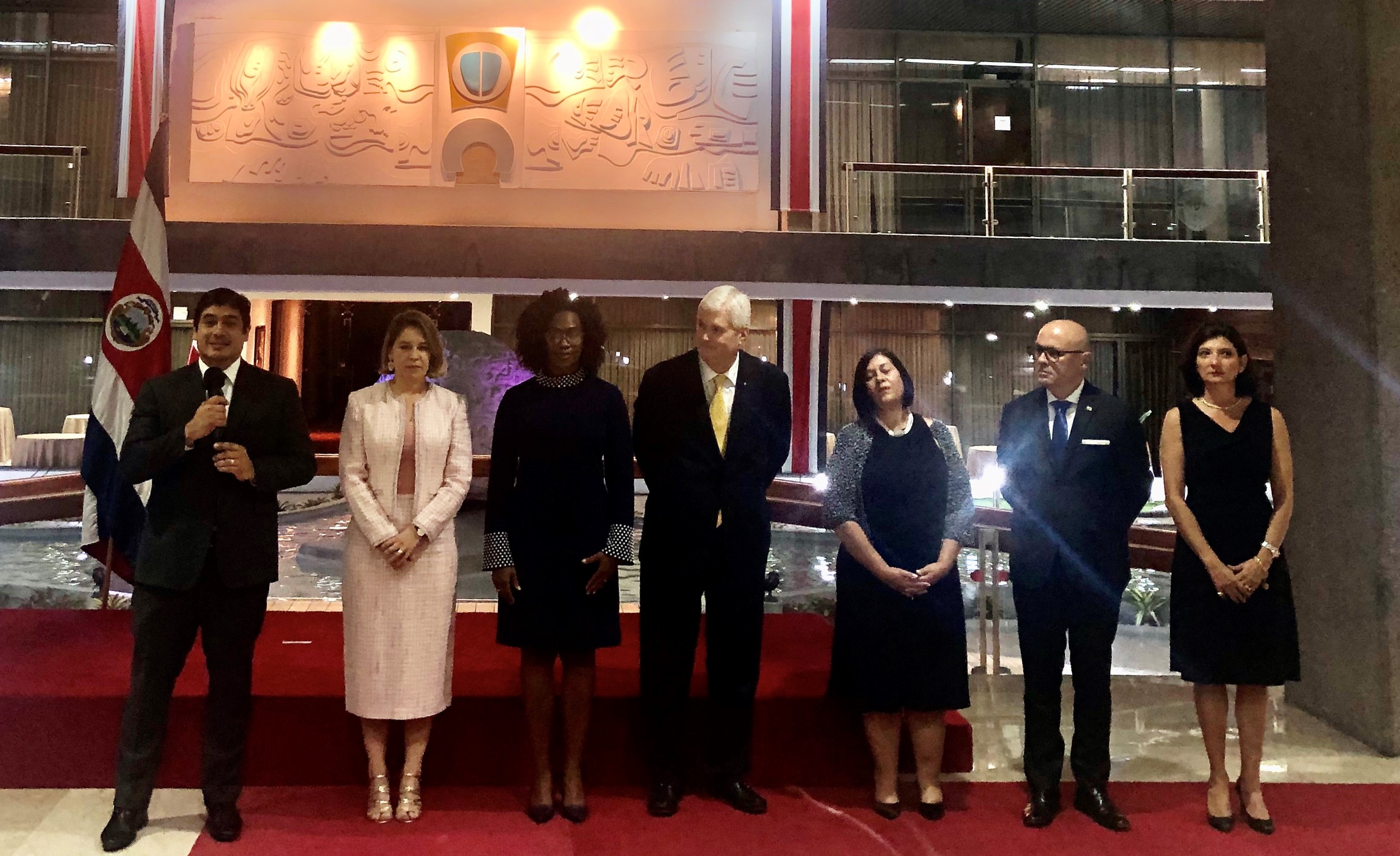 Presidente Carlos Alvarado; Primera Dama Claudia Dobles; Vicepresidenta Epsy campbell; Canciller Manuel Ventura; Vicecanciller Lorena Aguilar; Canciller designado, Rodolfo Solano; y Vicecanciller designada, Adriana Bolaños.