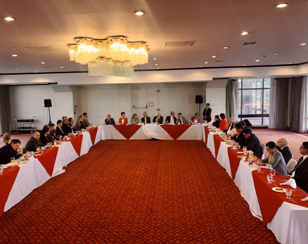 Senadores Carmen Gloria Aravena, Sebastián Keitel e Iván Flores visitan nuestra embajada