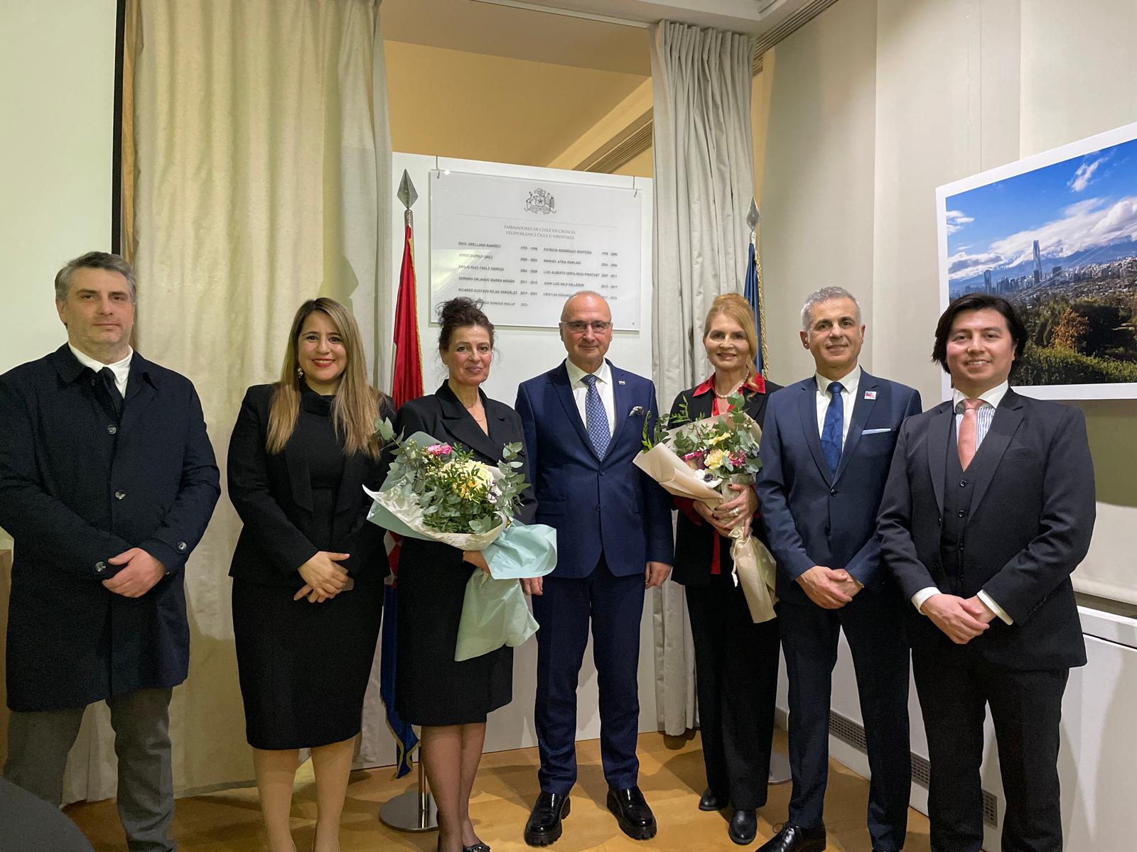 Durante la ceremonia, que reunió a más de 70 invitados, el Ministro Gordan Grlić-Radman y el Embajador Rodrigo Donoso develaron una placa conmemorativa con los nombres de los once Embajadores que han encabezado la representación chilena desde 1995. En sus intervenciones, destacaron la especial relación entre ambos países y la labor sostenida de la Embajada en el fortalecimiento del diálogo político, económico y cultural, tras 30 años de presencia ininterrumpida en Croacia.