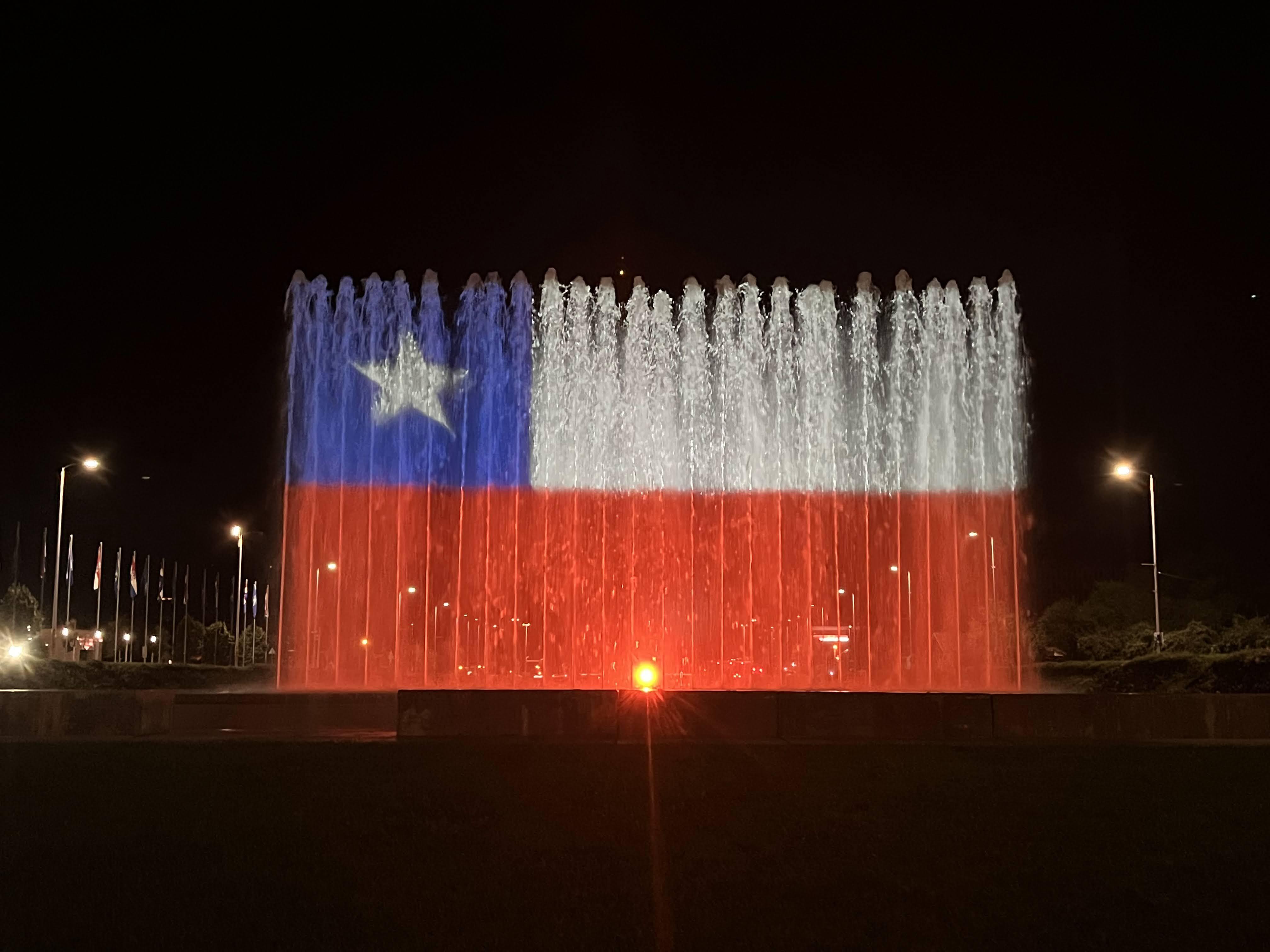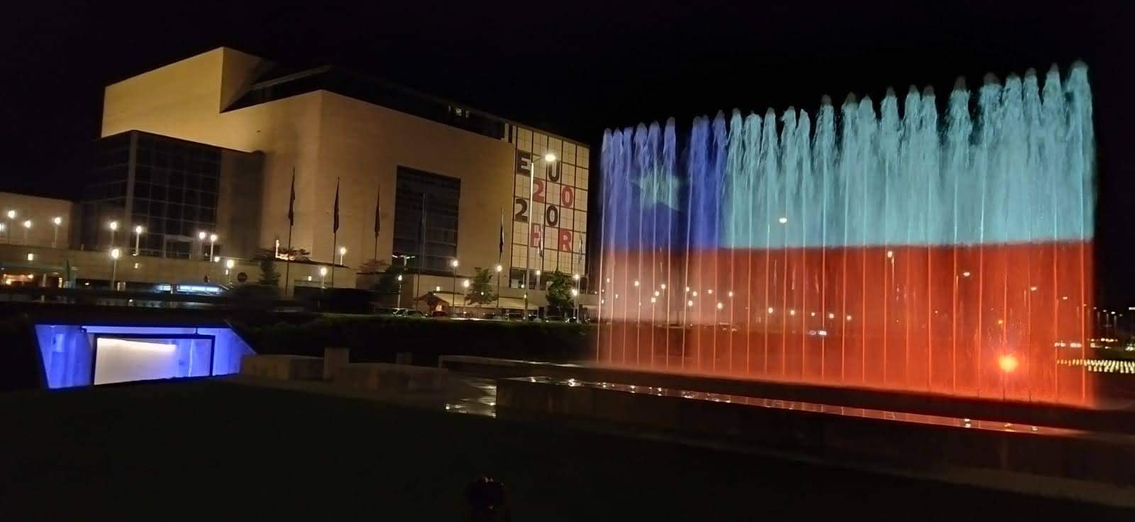 Proyección de la Bandera de Chile en las Fuentes de la ciudad de Zagreb este 18 de septiembre