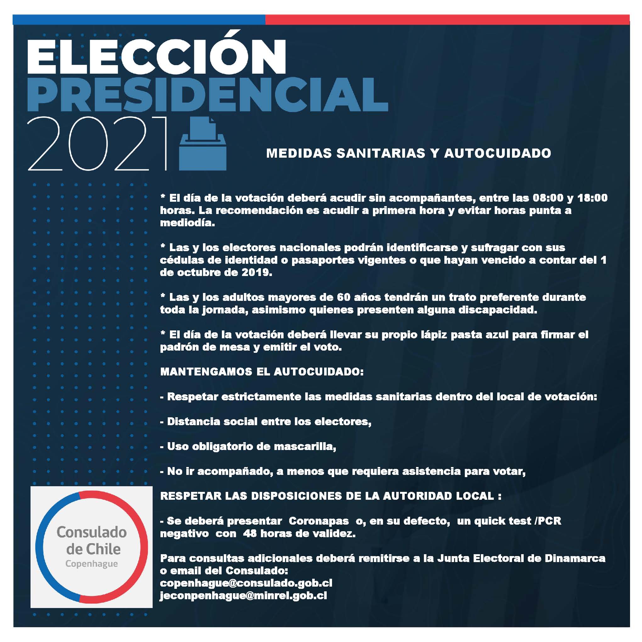 El día 21 de noviembre debes acudir a tu local de votación ubicado el Kastelsvej 15, tercer piso, sin acompañantes y puedes votar entre las 8:00 y 18:00 horas. Para saber si estás habilitado para sufragar debes ingresar a: https://consulta.servel.cl/ y para más información accede a: www.votoenelexterior.cl