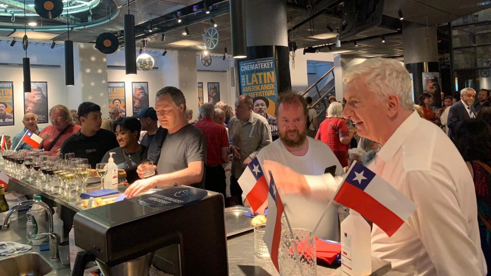 En el marco de este evento, que contó con gran asistencia de público chileno y danés, la Embajada de Chile ofreció recepción para los asistentes quienes disfrutaron de empanadas y vino chileno en un grato ambiente de cine.