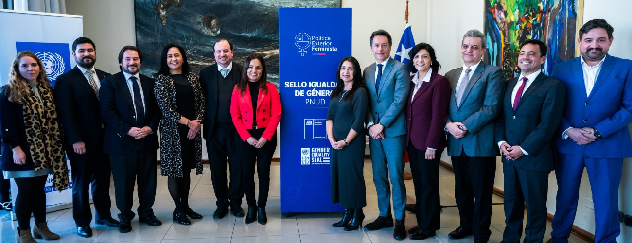 Hoy se realizó en el Ministerio de Relaciones Exteriores la ceremonia de firma de compromiso directivo con el Sello de Igualdad de Género para las Instituciones Públicas del Programa de las Naciones Unidas para el Desarrollo (PNUD). Con esto, cada una de las direcciones de la Cancillería se comprometió a cumplir con las distintas acciones requeridas para alcanzar dicho reconocimiento por parte del PNUD.