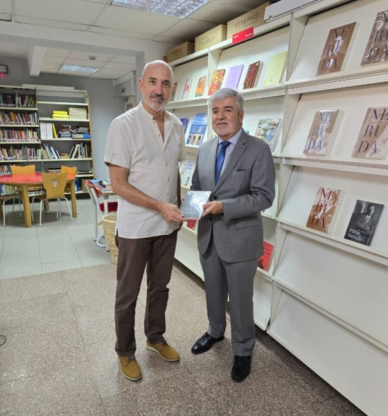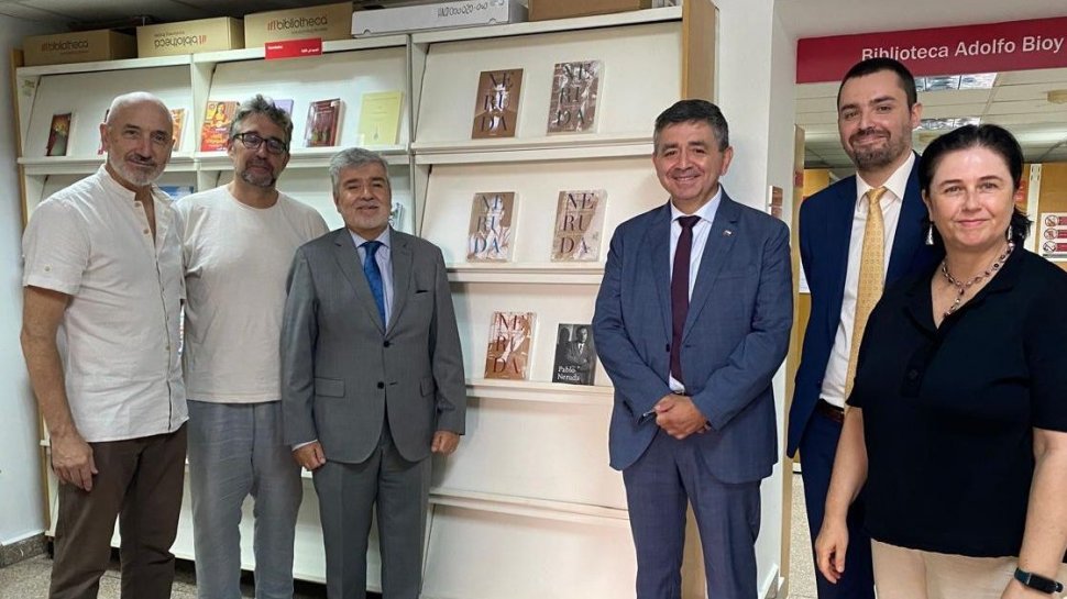 En el marco de los 120 años del natalicio del Premio Nobel de Literatura Pablo Neruda, así como de los 100 años de la publicación de su obra “20 poemas de amor y una canción desesperada”, el Embajador de Chile en Egipto, Roberto Ebert Grob procedió a donar a la Biblioteca Adolfo Bioy Casares del Instituto Cervantes de El Cairo, la colección de cinco tomos sobre la obra completa del autor, así como dos copias de la edición conmemorativa de Crepusculario.