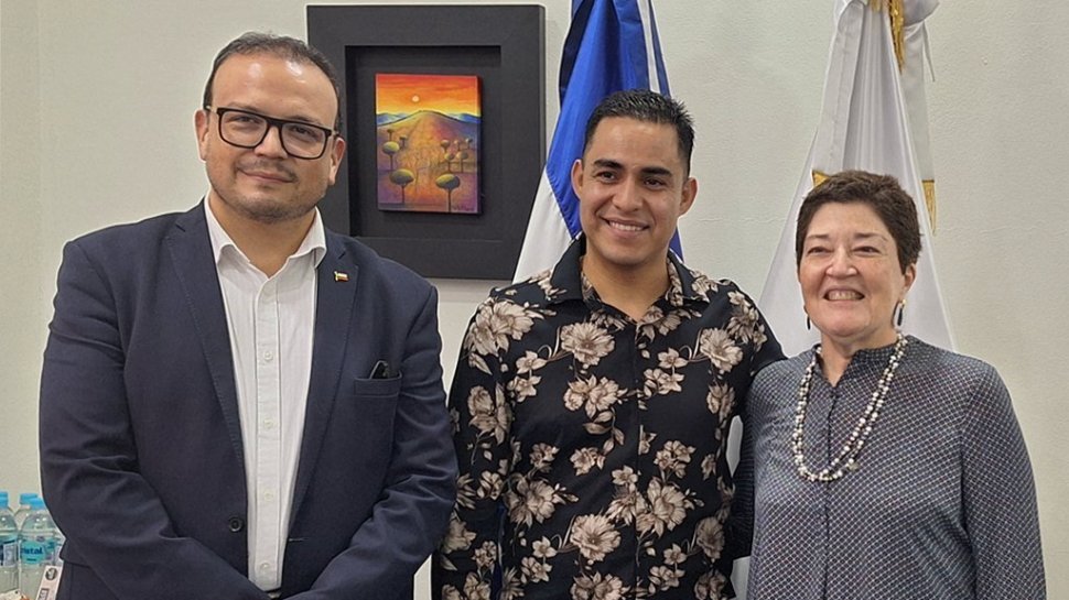 La embajadora María Soledad Morales realizó el 17 de febrero una visita al Palacio Tecleño de la Cultura y las Artes donde sostuvo una enriquecedora y distendida conversación con el alcalde de La Libertad Sur, Henry Flores, una oportunidad para entablar lazos de cooperación con el distrito de Santa Tecla.