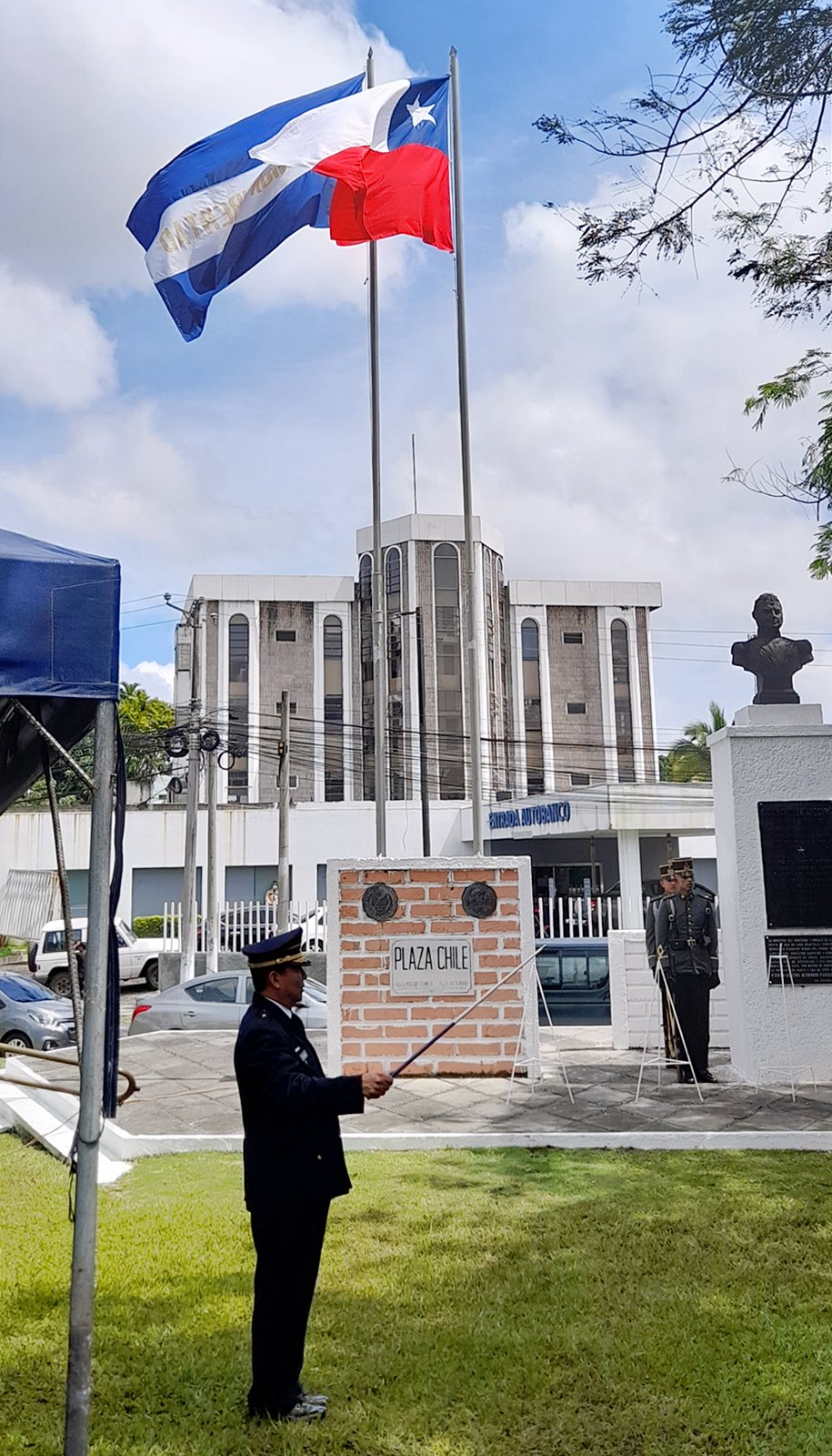 Plaza Chile en San Salvador, ceremonia de conmemoración del 212 Aniversario de Independencia de Chile.
