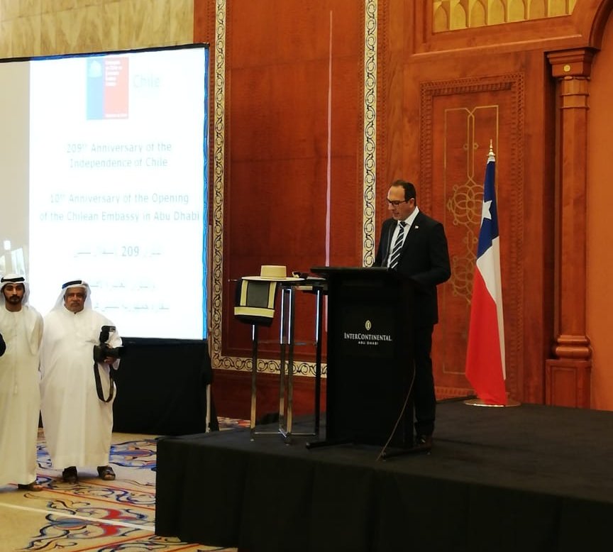 En el Hotel Intercontinental de Abu Dhabi, con más de 150 invitados y la asistencia especial del Ministro (A) de Relaciones Internacionales y Cooperación Internacional en Asuntos de Seguridad y Defensa, Obaid Al Hairi Salem Al Ketbi, el 1 de octubre de 2019 fue celebrado el día nacional de Chile.