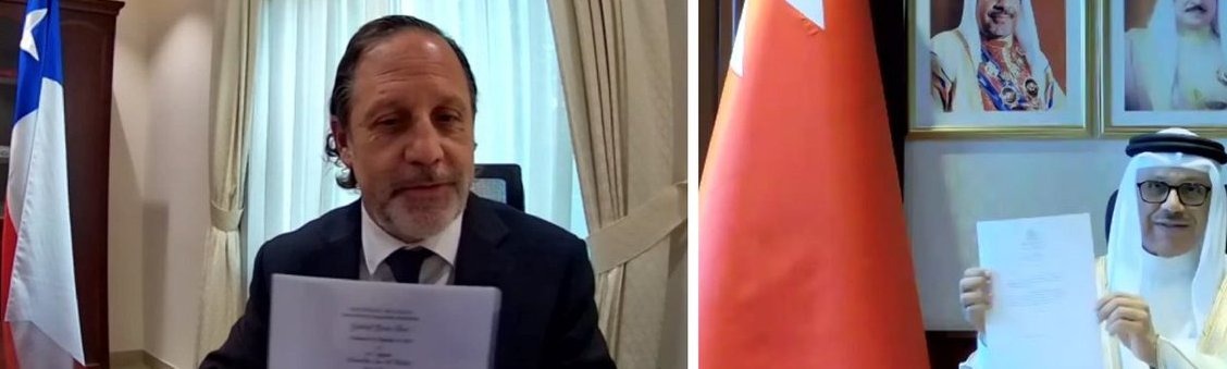 En una ceremonia remota realizada el 22 de diciembre de 2022, el Embajador de Chile en Emiratos Árabes Unidos, Patricio Díaz Broughton, presentó al Ministro de Relaciones Exteriores del Reino de Bahréin, Dr. Abdullatif bin Rashid Al-Zayan las copias de las cartas que lo acreditan como Embajador Plenipotenciario no residente de nuestro país ante el Reino de Bahréin.
