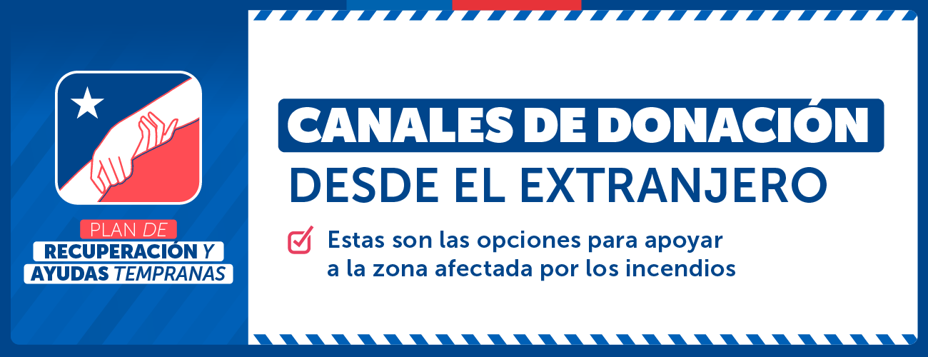 Para donativos en dinero de personas naturales, por medio de transferencia bancaria internacional y sistema PayPal (Transbank), se puede apoyar a las siguientes organizaciones: