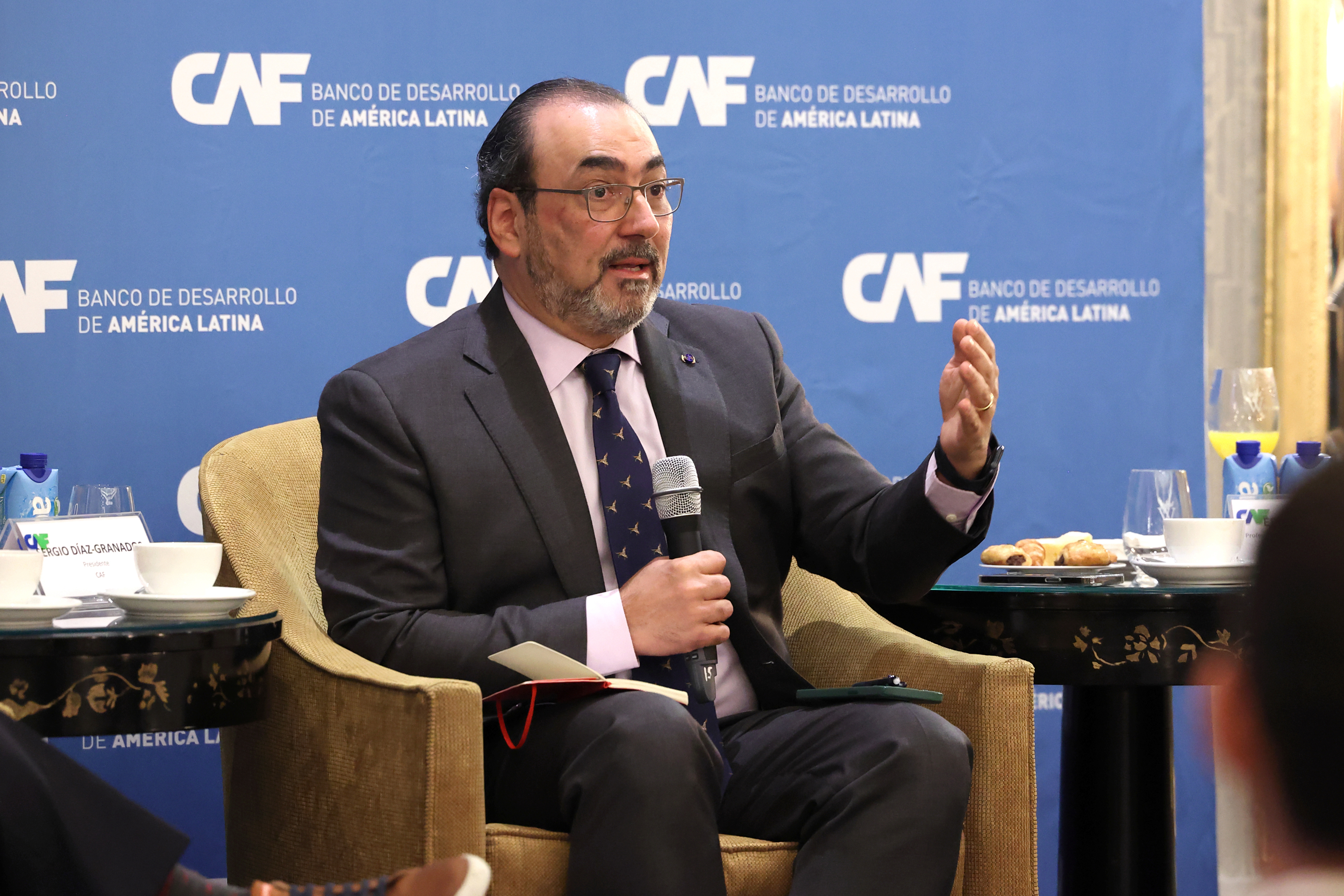 Posteriormente se asistió a un coloquio titulado “Una agenda renovada UE-ALC. Apoyo de la CAF a la presidencia española del Consejo de la Unión Europea” a cargo del Secretario General del Tesoro de España, Carlos Cuerpo y el Presidente Ejecutivo de CAF, Sergio Díaz-Granados.